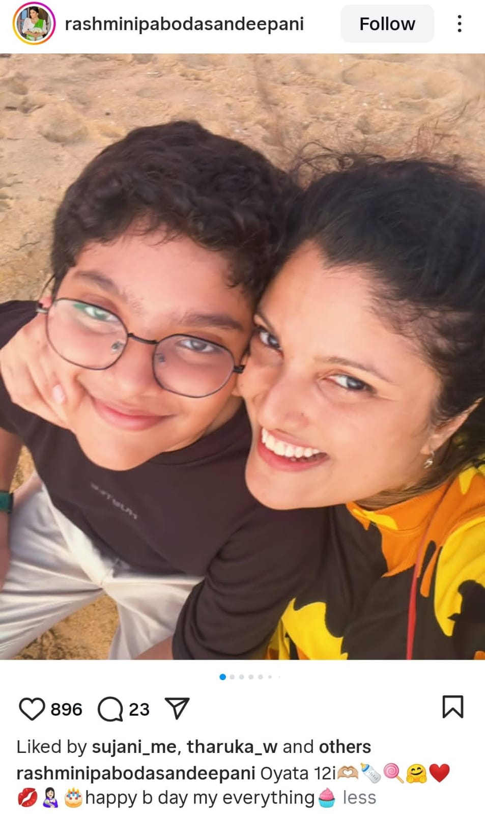 ඇගේ ආදරණී පුතුගේ 12 වැනි උපන්දිනය වෙනුවෙන් පබෝධා ඔහුට සුබපැතුමක් එක්කරලා තියනවා..